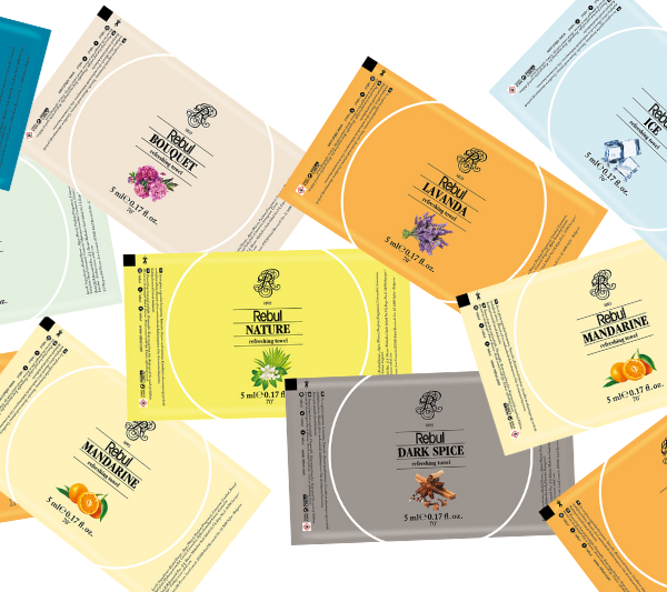 Rebul ıslak mendilin ice, lavanta, mandalina, aqua, buket, yasemin ve lime (misket limonu) kokulu olarak da çeşitleri mevcuttur.